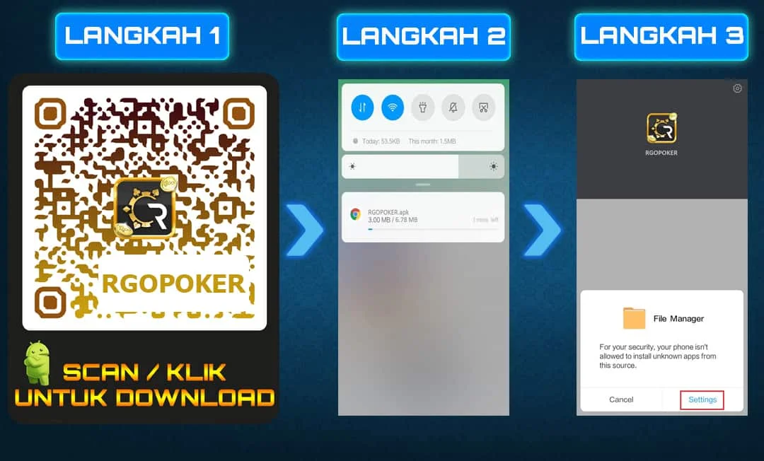 Untuk bermain melalui handphone android sangat mudah, anda hanya perlu download File APK ANDROID (Size 8.89 MB) yang telah tersedia.